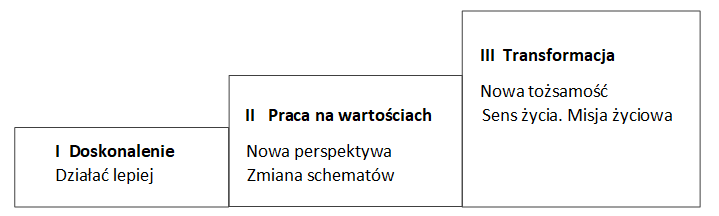 Coachingu Rozwojowym proponujemy pracę na 3 poziomach. Jak głęboko chce pracować klient, zależy od potrzeb i jego gotowości w danym momencie życia.